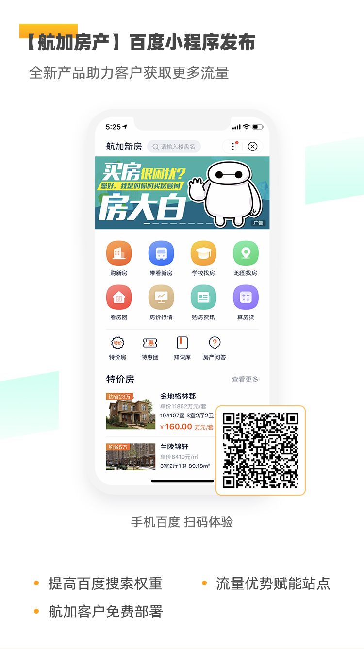 航加全新推出房产百度小程序,依靠百度搜索权重,为区域房产平台流量加持。