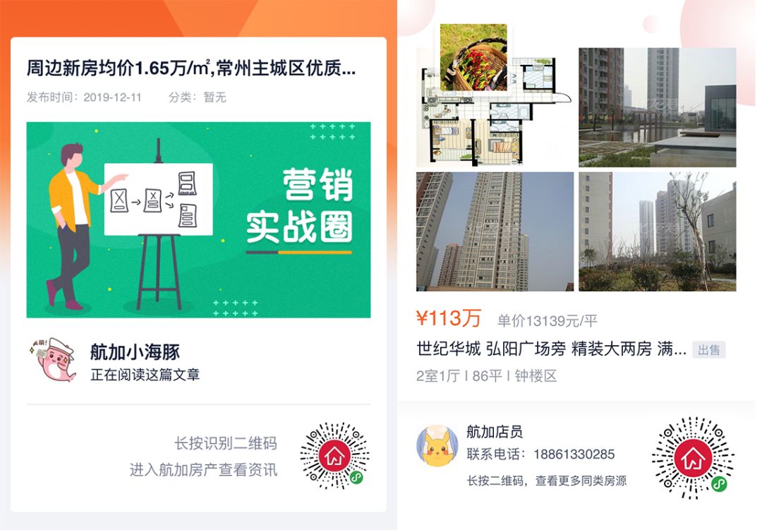 楼盘详细页、资讯详细页、顾问详细页都增加了海报分享功能,通过微信裂变分享和朋友圈传播,获得更多曝光。