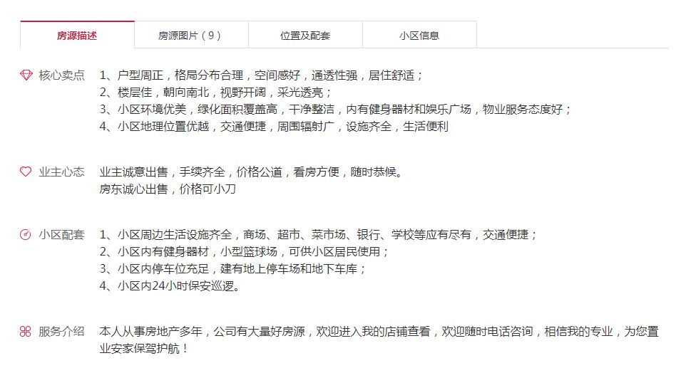 此次新增的房源详情文字介绍模板,进一步丰富了对房源的描述,使页面排版更加美观整洁,将更好的包装展示房源,促成交易。同时对于二手房中介来说,发布房源详情时可以调用相应的模板介绍,操作更加便捷,提高了房源管理效率。
