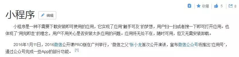 在女儿的帮助下我开始查找有关小程序的资料。百度百科是这样解释的: