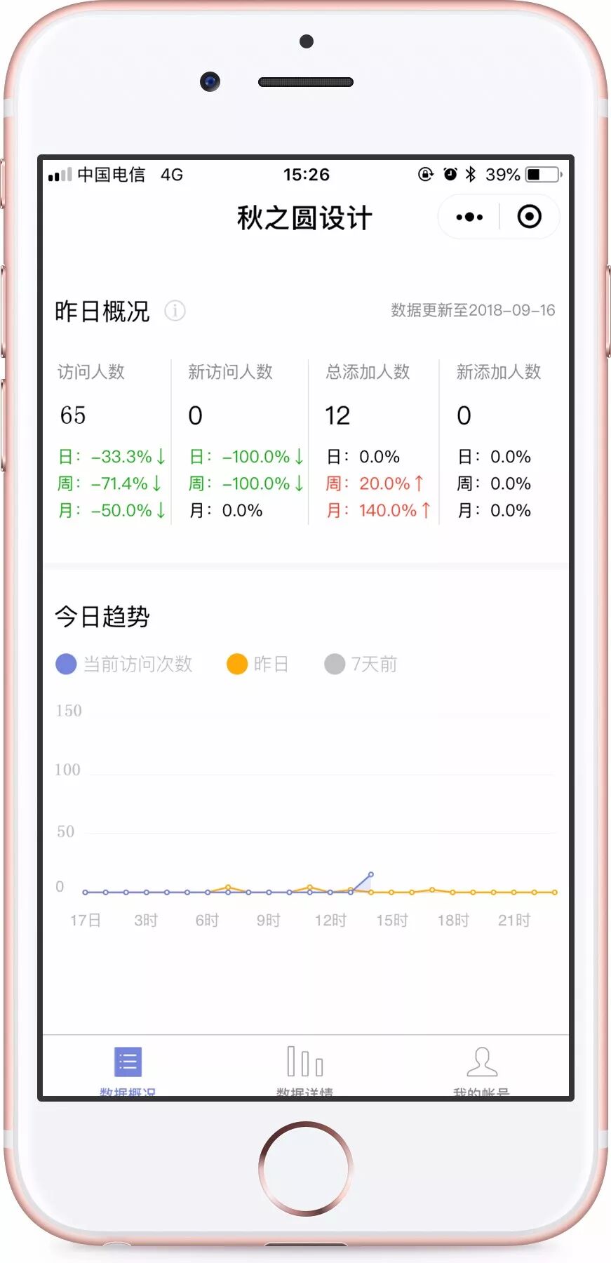 4月份签的合同,到现在已经快6个月了,半年过去了,本来也是没指望这个小程序能给我带来多大的订单量的,但是慢慢的,订单量一天天增多,让我更加有信心那这个小程序做好做优了。它带给我的惊喜与能量是远远超出我的预想的。总的来说,业绩翻倍的确实现了,有时甚至翻三倍或者更多。销售朋友告诉,关于小程序的数据可以在数据助手的小程序上查看,上面的数据有很多,但是对我来说没必要都关注,我比较关心的数据有三个—日浏览量、人均停留时间、订单转化量。这些数据是只有店铺的运营者才能看到,别人是看不到的,具有很高的私密性。但是今天破例,我就拿出来和大家说说吧。