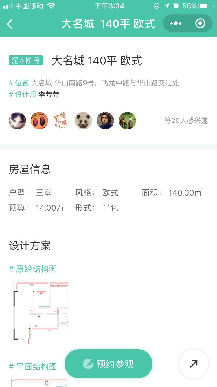 房屋信息、设计方案、施工进度等信息展示较为全面,图文排版还可以再优化。
