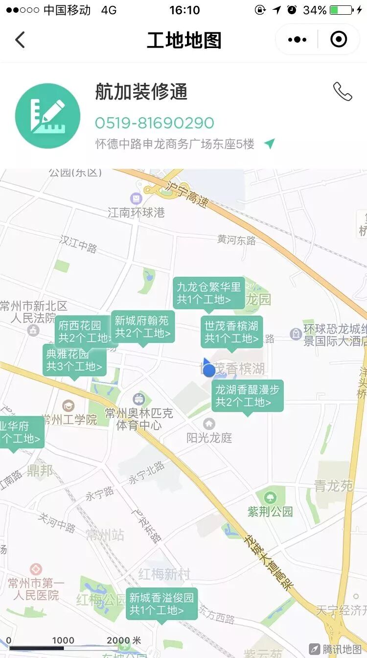 分享工地地图单页时展示了商家地址和联系方式,有利于引导需求用户拨打电话进行装修咨询,促进订单成交。