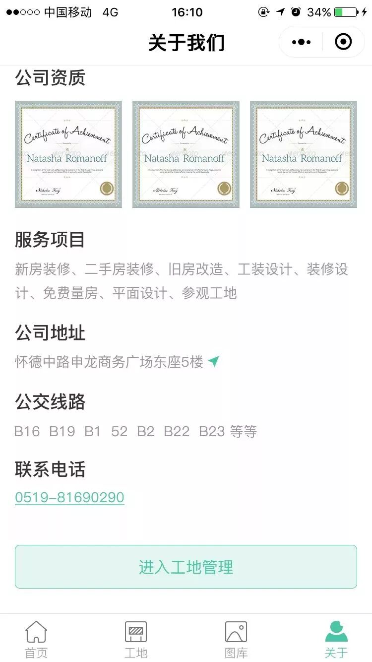 已绑定的职员可在小程序-关于我们页面进入工地管理,直接管理工地。在原小程序上新增了入口,无需另外注册一个小程序,不用担心有附加费用。