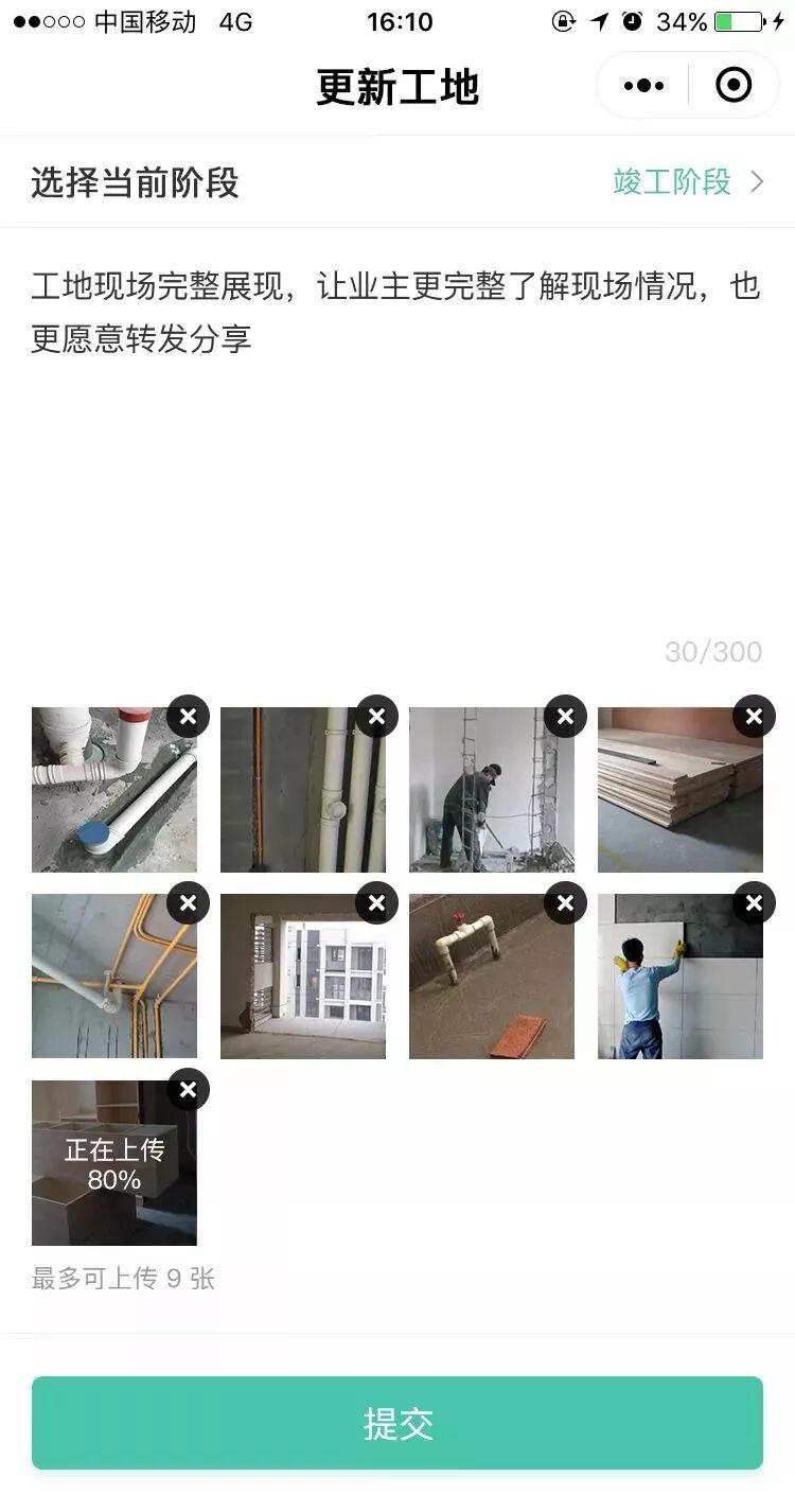 ②以前只能坐在电脑前进入pc后台上传内容,现在可以随时随地在手机上更新工地内容,解放了双脚。