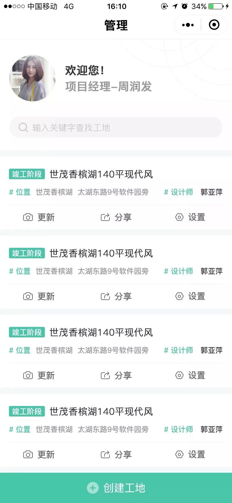① 以前都是一个网络销售上传内容,费时费力费心,现在实现了多成员同时管理工地,对工地进行内容更新、修改、分享、删除或禁用,可以拉动项目经理、设计师等一起更新工地内容,解放了网销人员的双手。