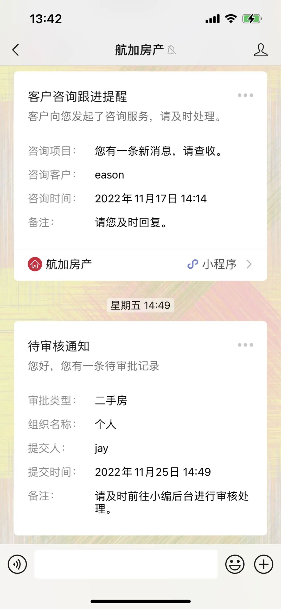 目前通过后台配置,二手房小编可以实时接收到待审核的信息。