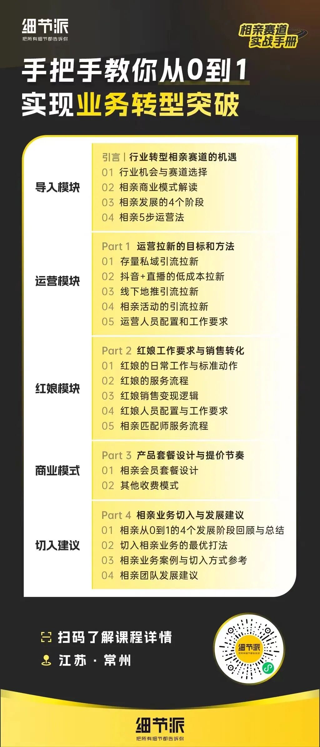 我们也联合赵老师持续打磨相亲细节派课程,感兴趣的小伙伴可以关注并报名,听赵老师分享更加深入的实操经验。